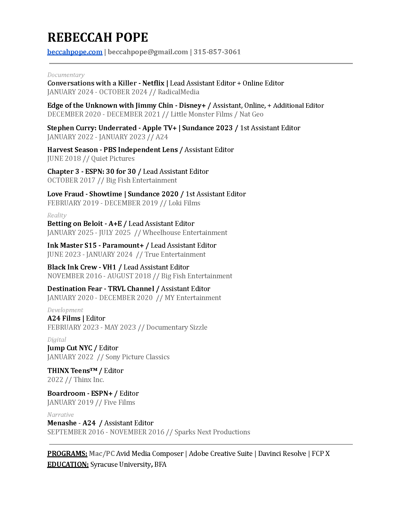 FILM + TV EDITOR